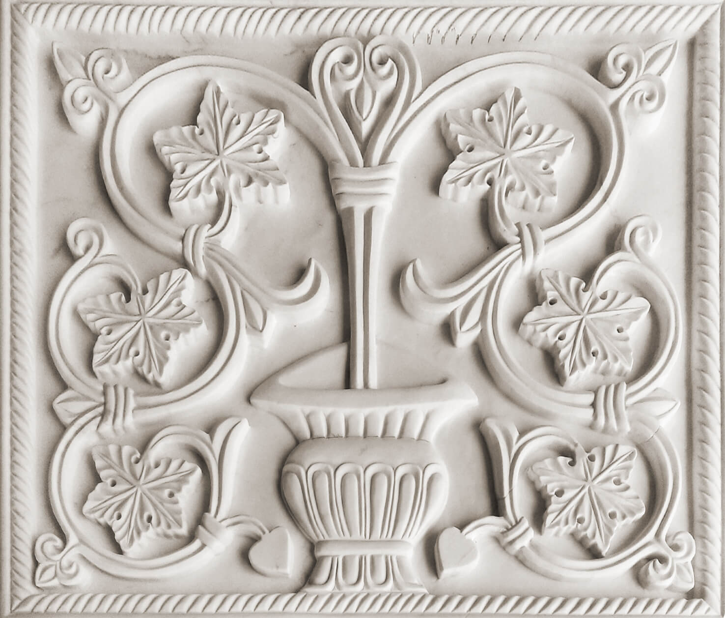 «Покровские мастерские» изготавливают иконостасы из различных пород камня: мрамора, иерусалимского камня, доломита, оникса… Каменный иконостас может быть гладким или украшенным резьбой, с литыми элементами, вставками из мозаики: каменной или выложенной из смальты.